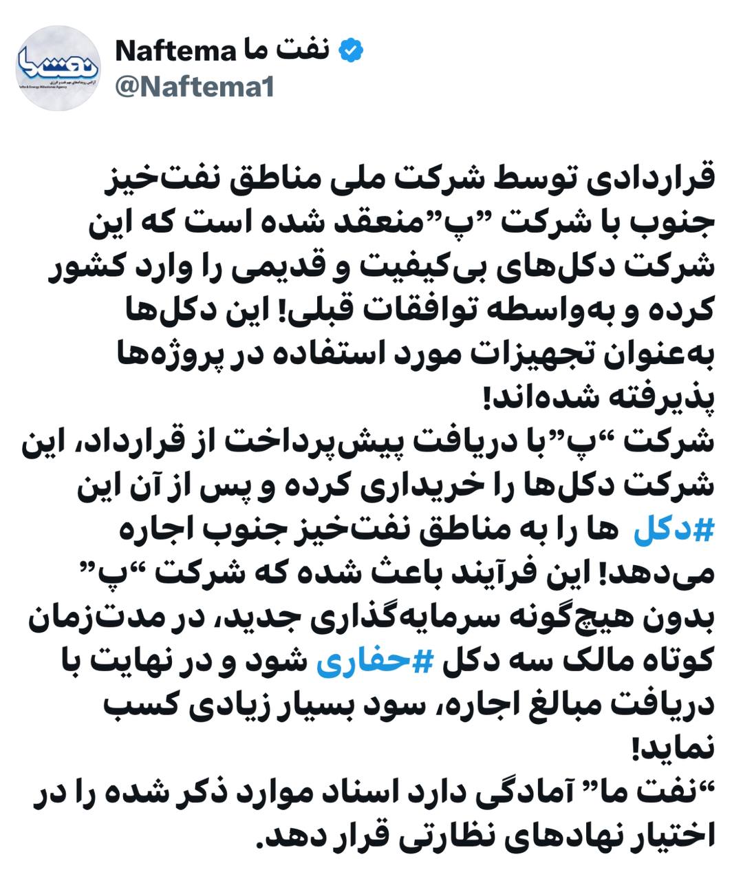 “نفت ما” آمادگی دارد اسناد ذکر شده را در اختیار نهادهای نظارتی قرار دهد.