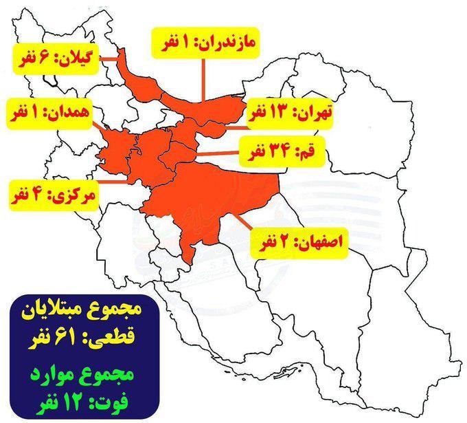 نقشه پراکندگی مبتلایان به کرونا در ایران تا امروز