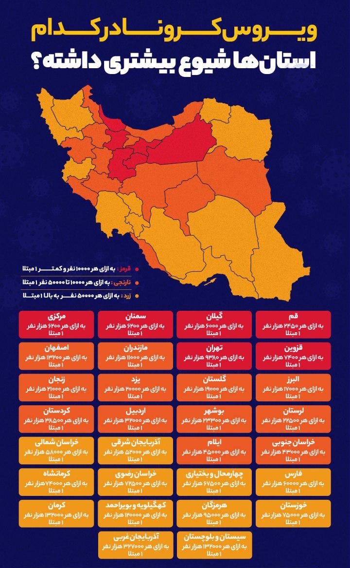 کرونا در کدام استانها شیوع بیشتری داشت؟