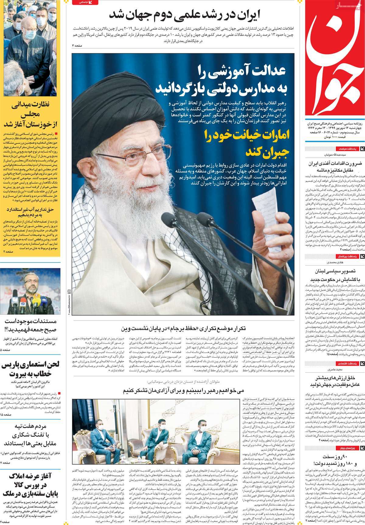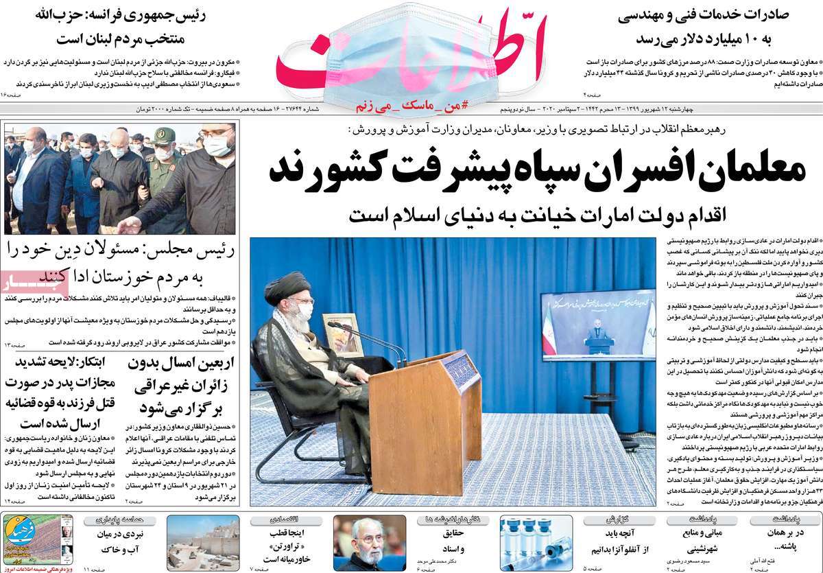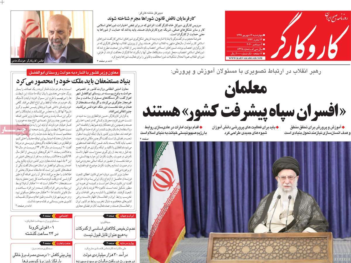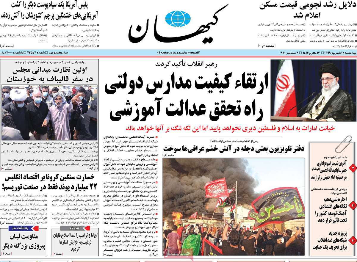 تصاویر صفحه اول روزنامه های امروز چهارشنبه 12 شهریور ماه .