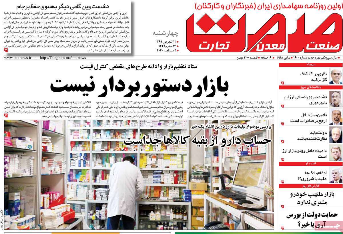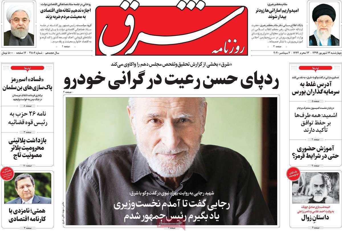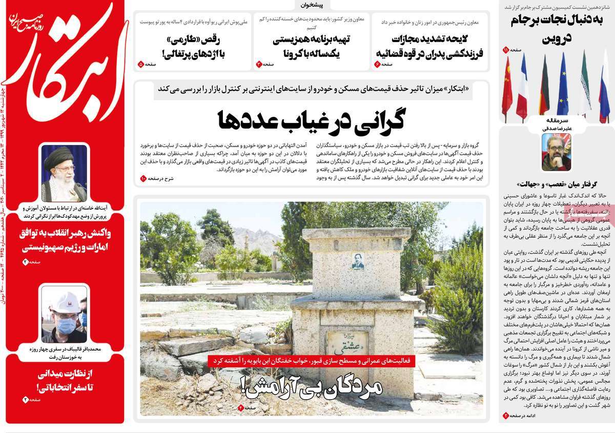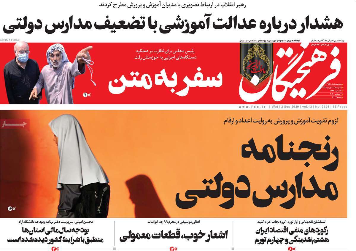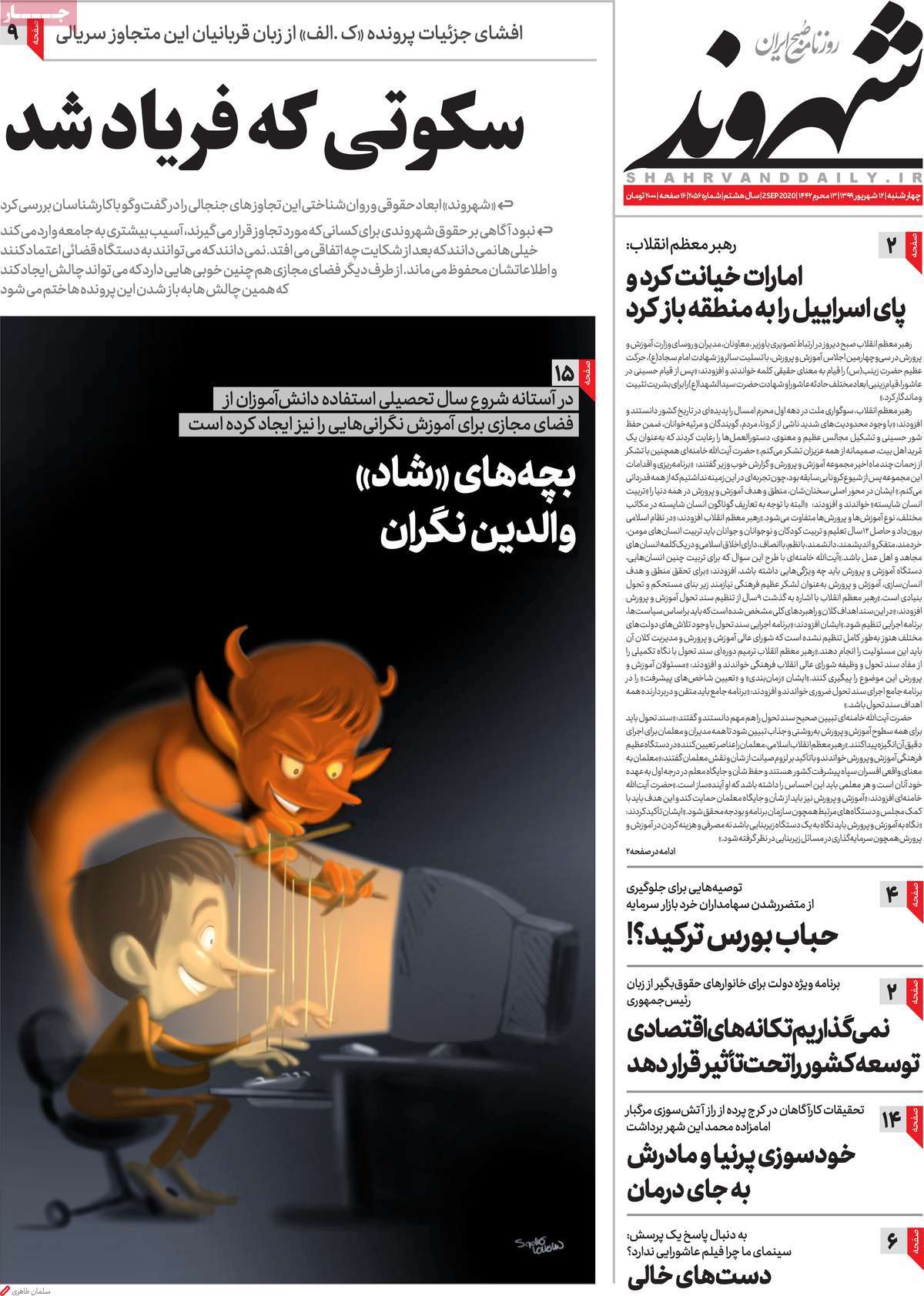 تصاویر صفحه اول روزنامه های امروز چهارشنبه 12 شهریور ماه .
