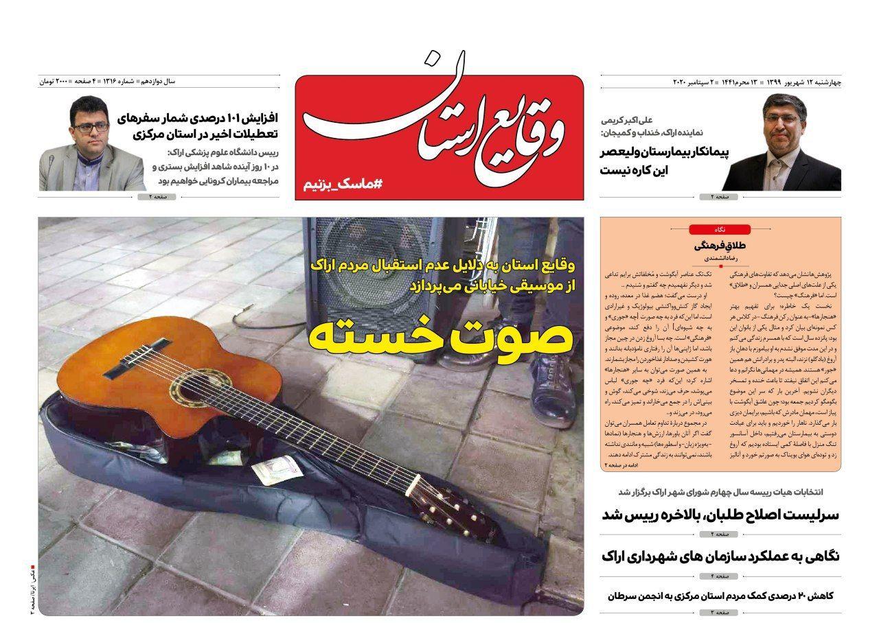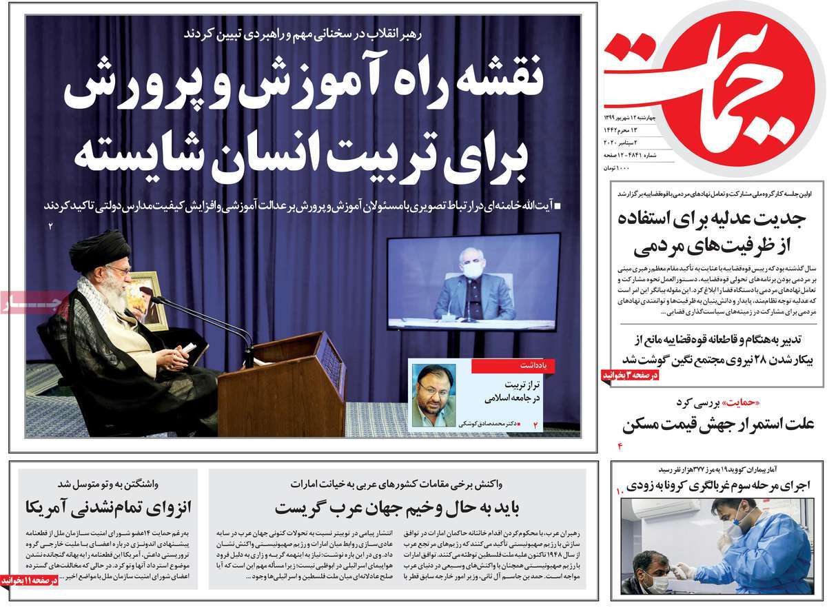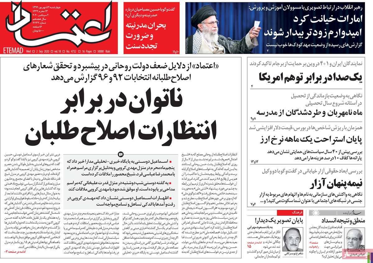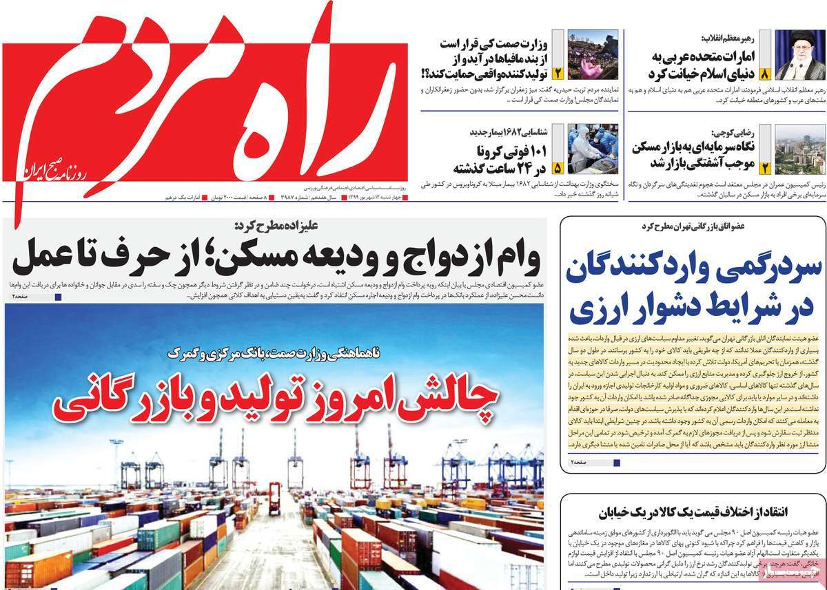 تصاویر صفحه اول روزنامه های امروز چهارشنبه 12 شهریور ماه .