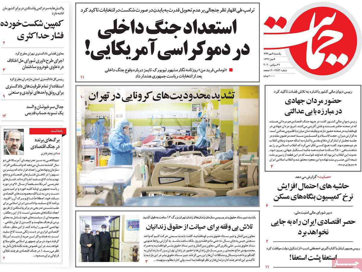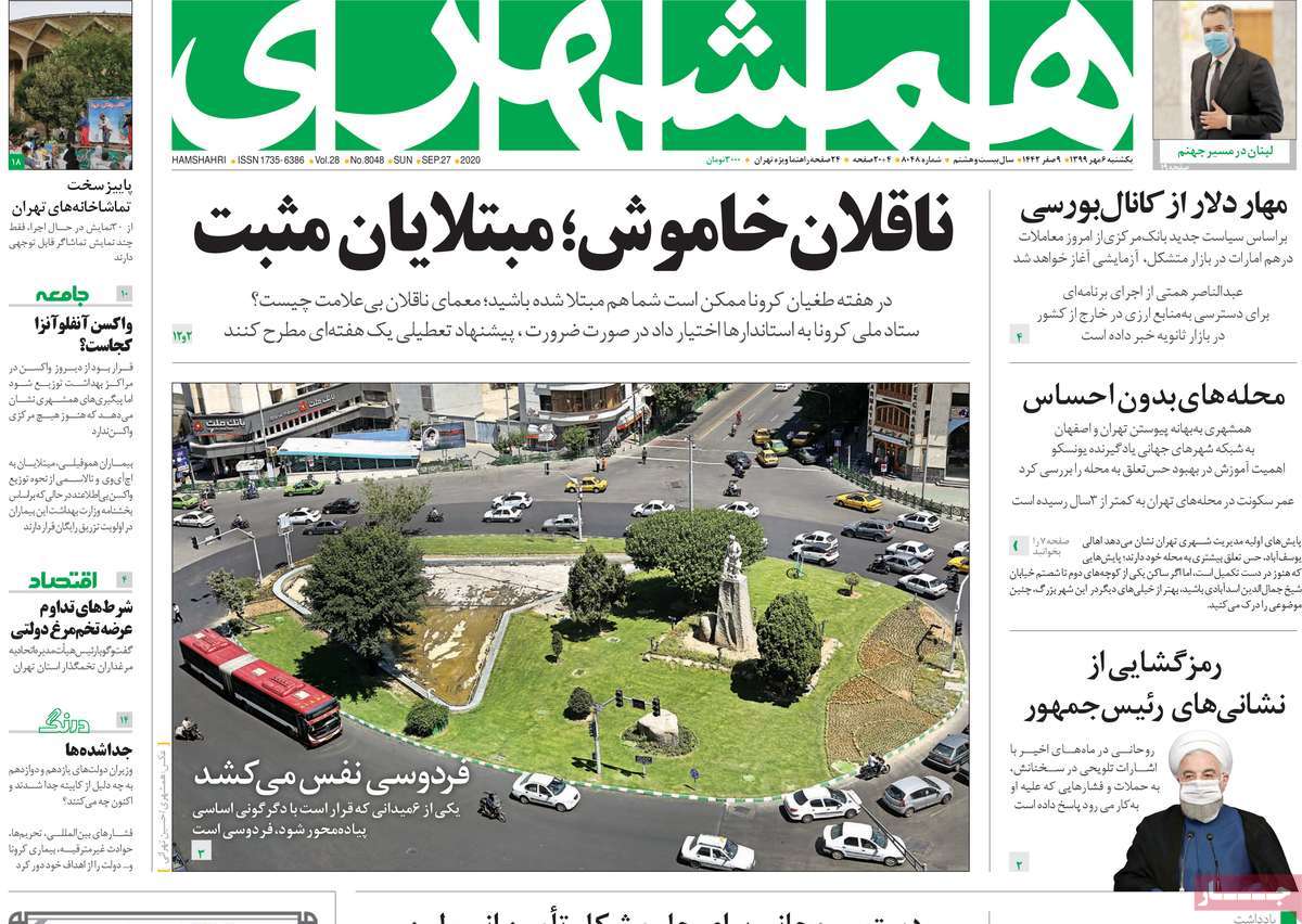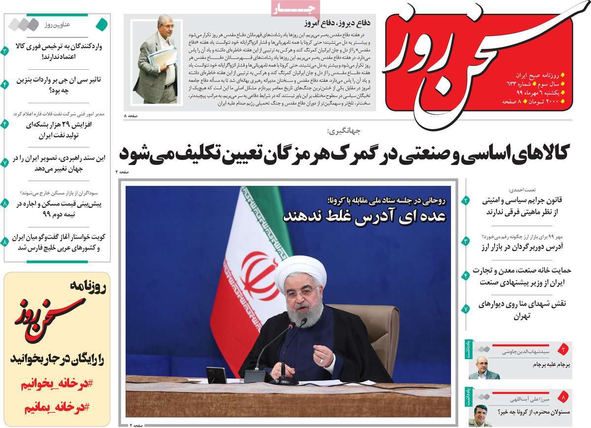 تصاویر صفحه اول روزنامه های امروز یکشنبه 6 مهر ماه .