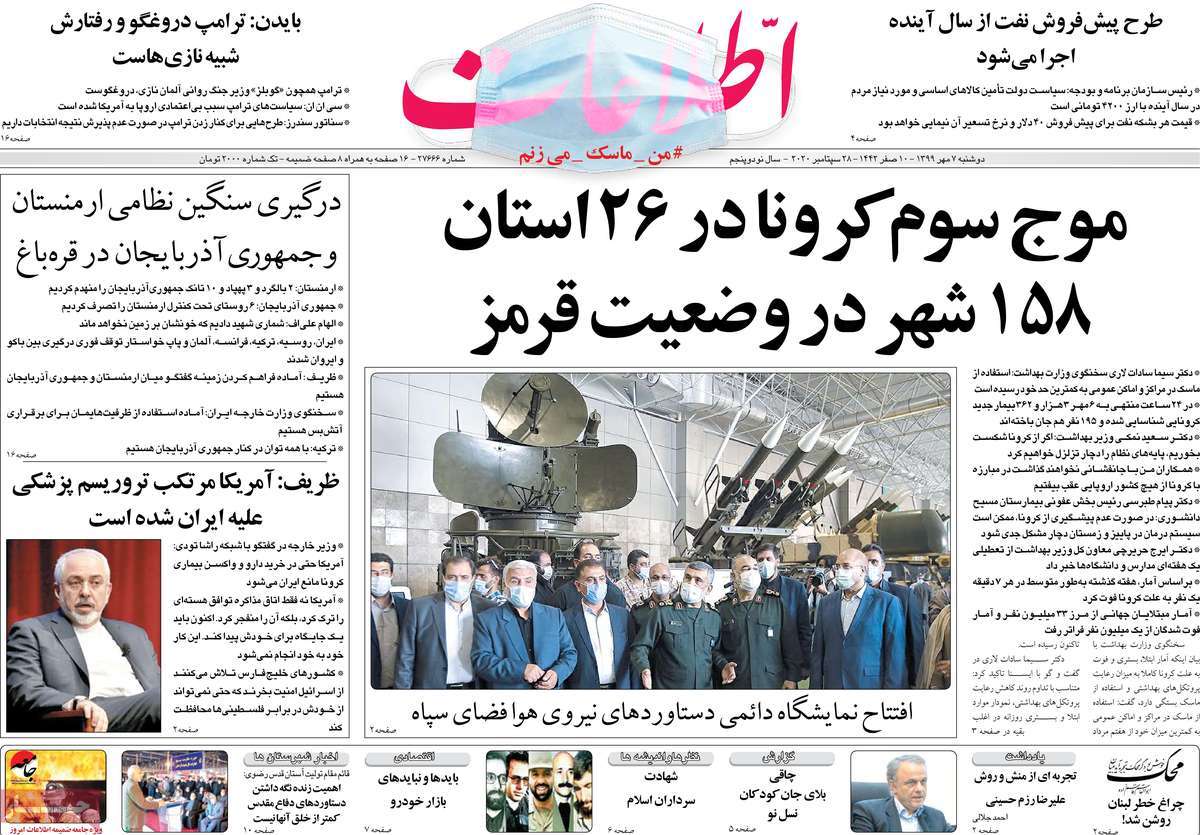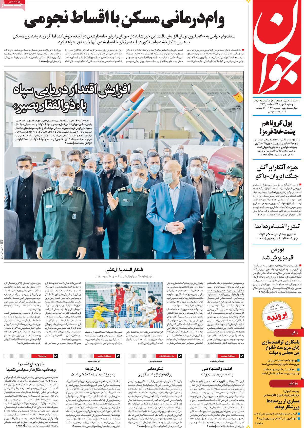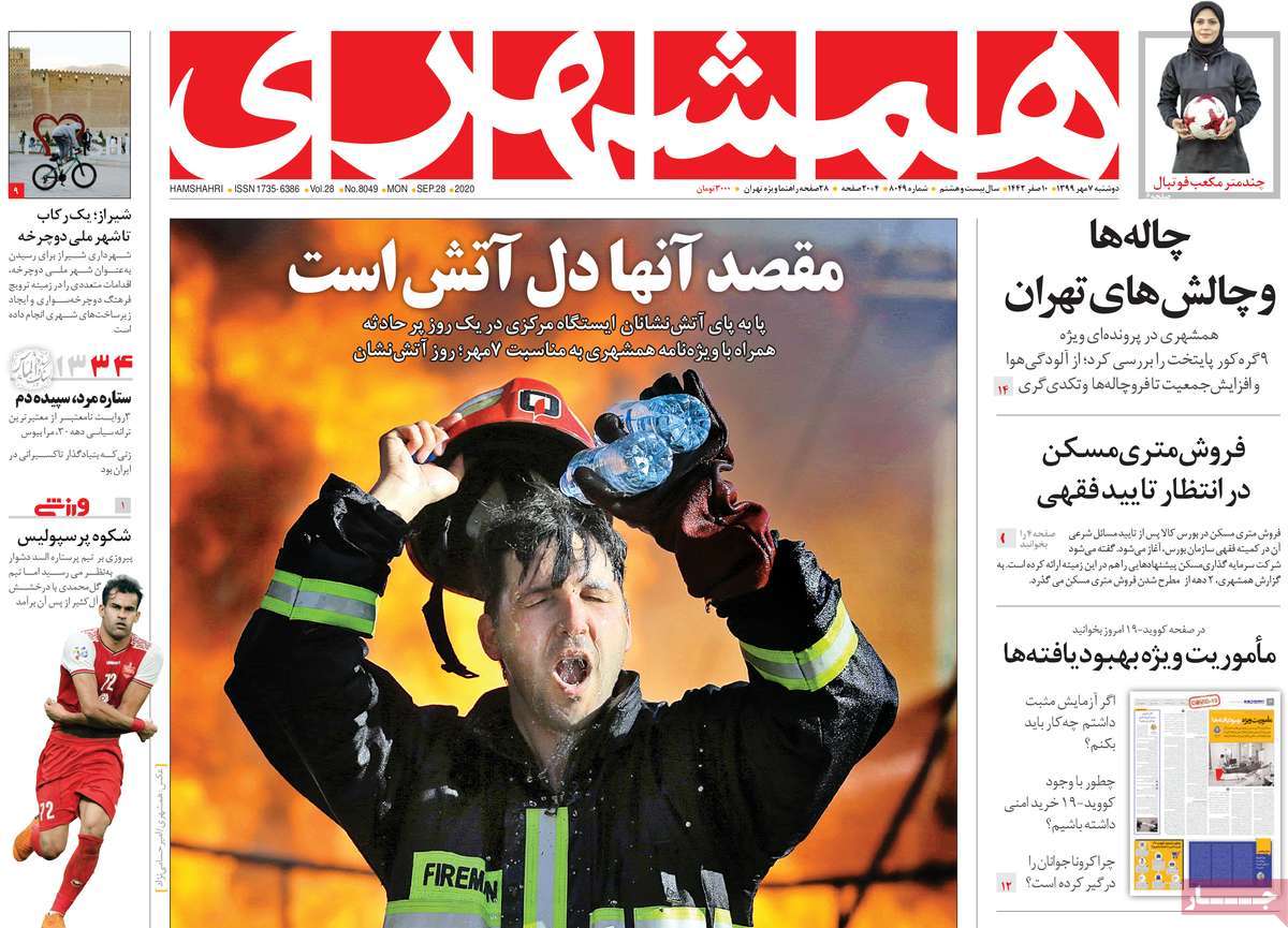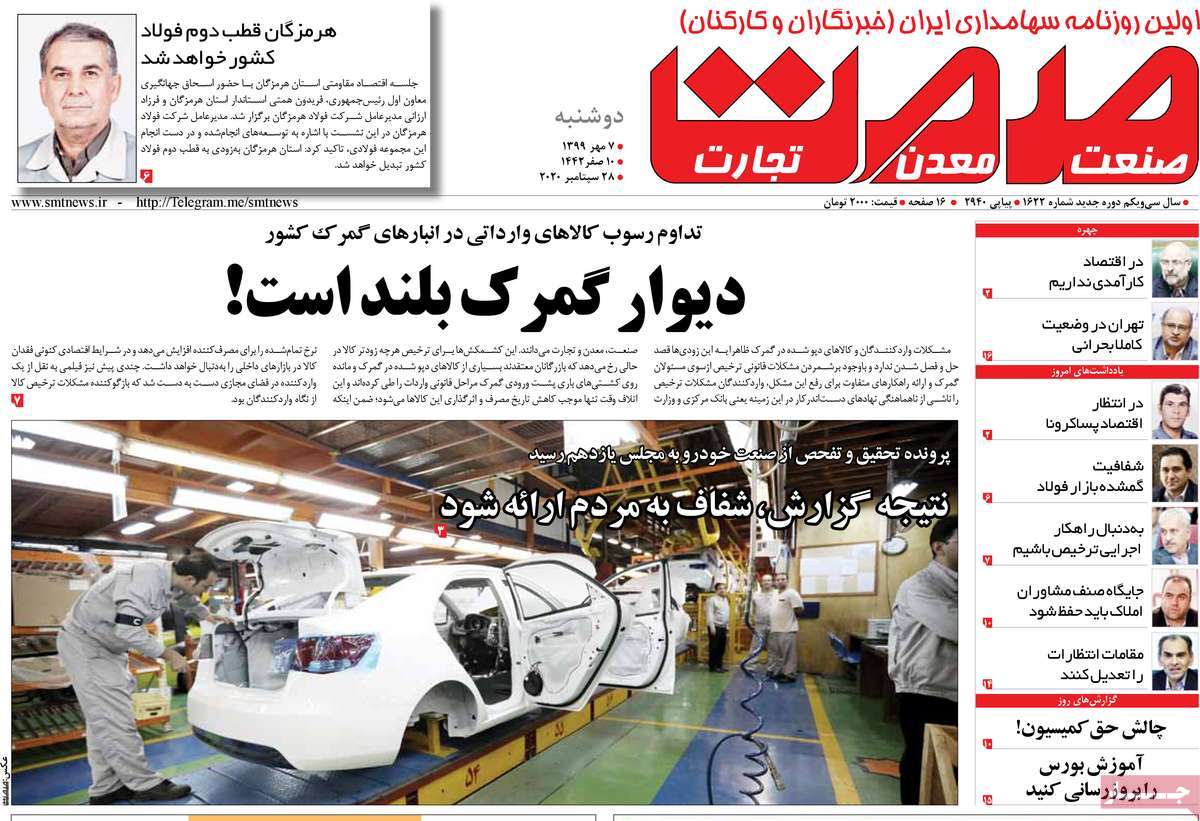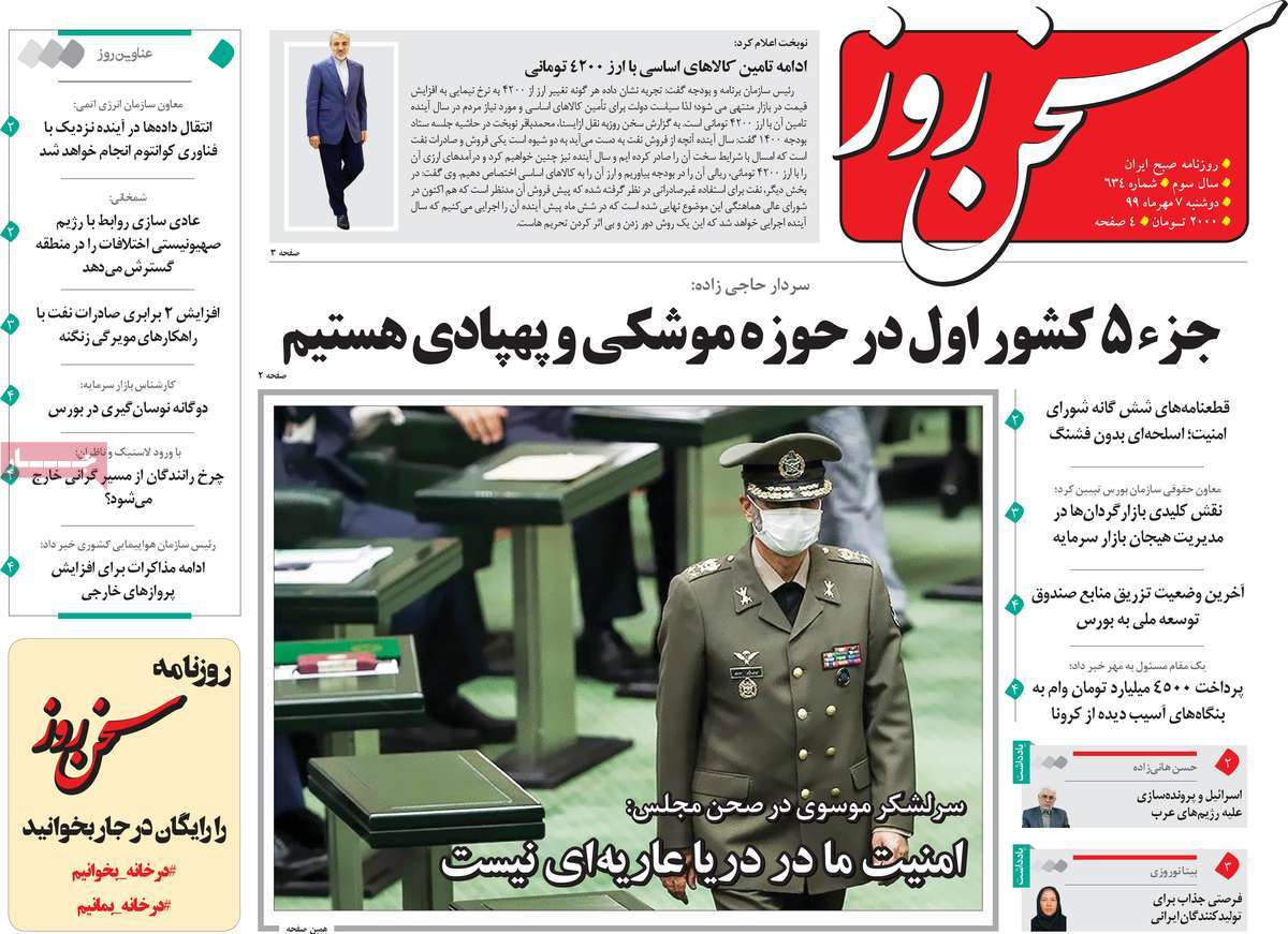 تصاویر صفحه اول روزنامه های امروز دوشنبه 7 مهر ماه .