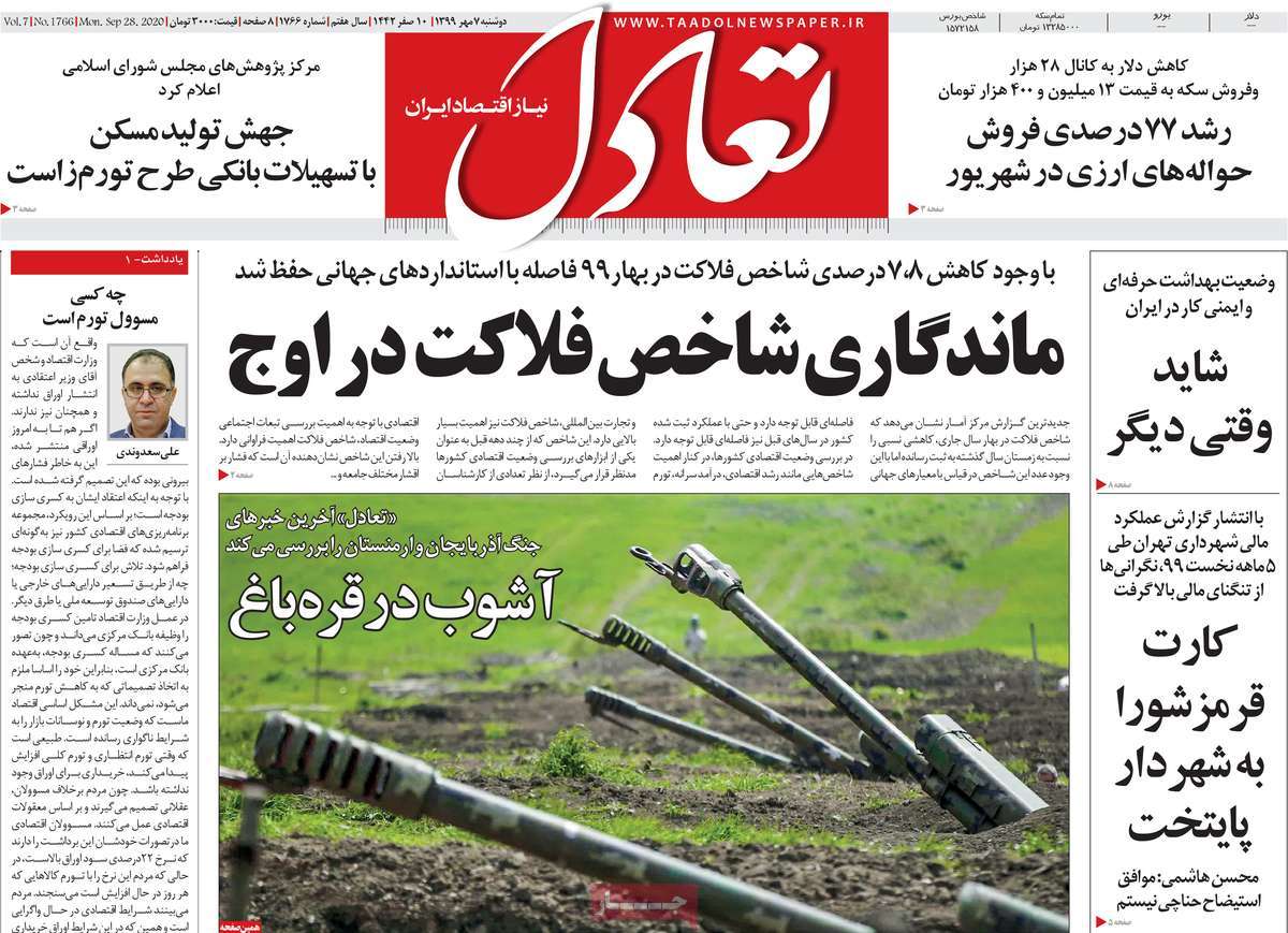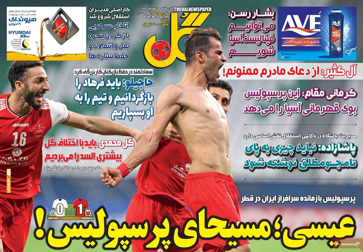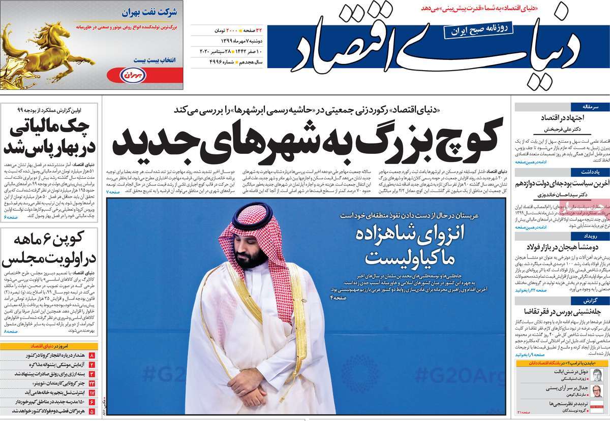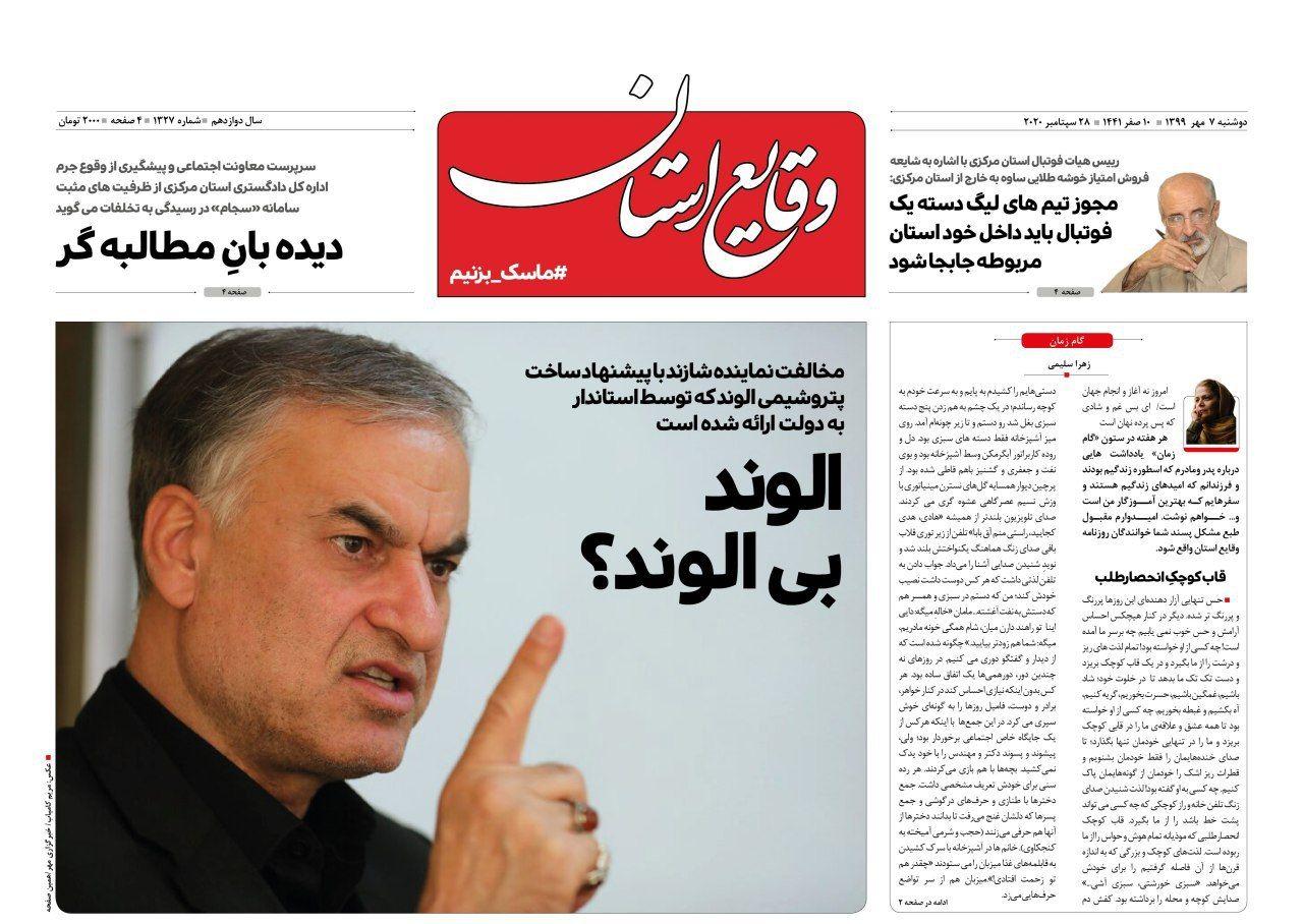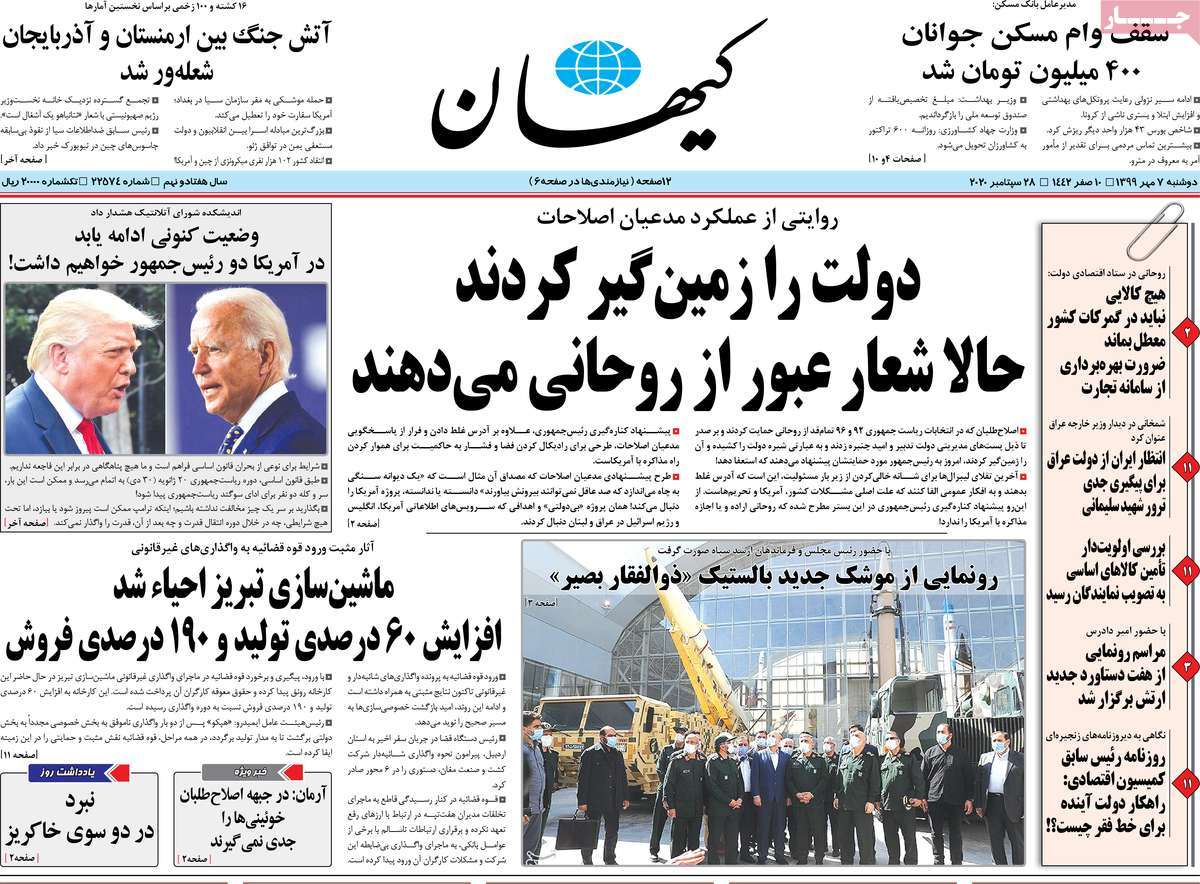 تصاویر صفحه اول روزنامه های امروز دوشنبه 7 مهر ماه .