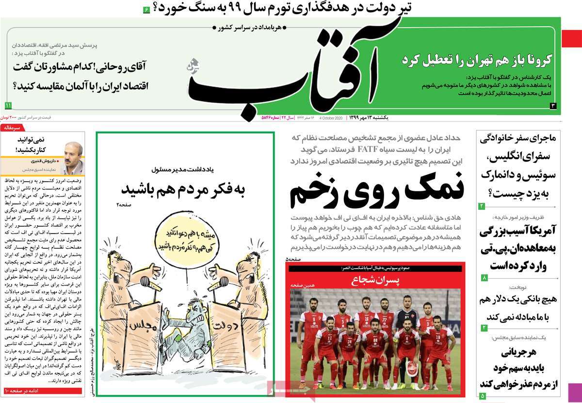 تصاویر صفحه اول روزنامه های امروز یکشنبه 13 مهر ماه .