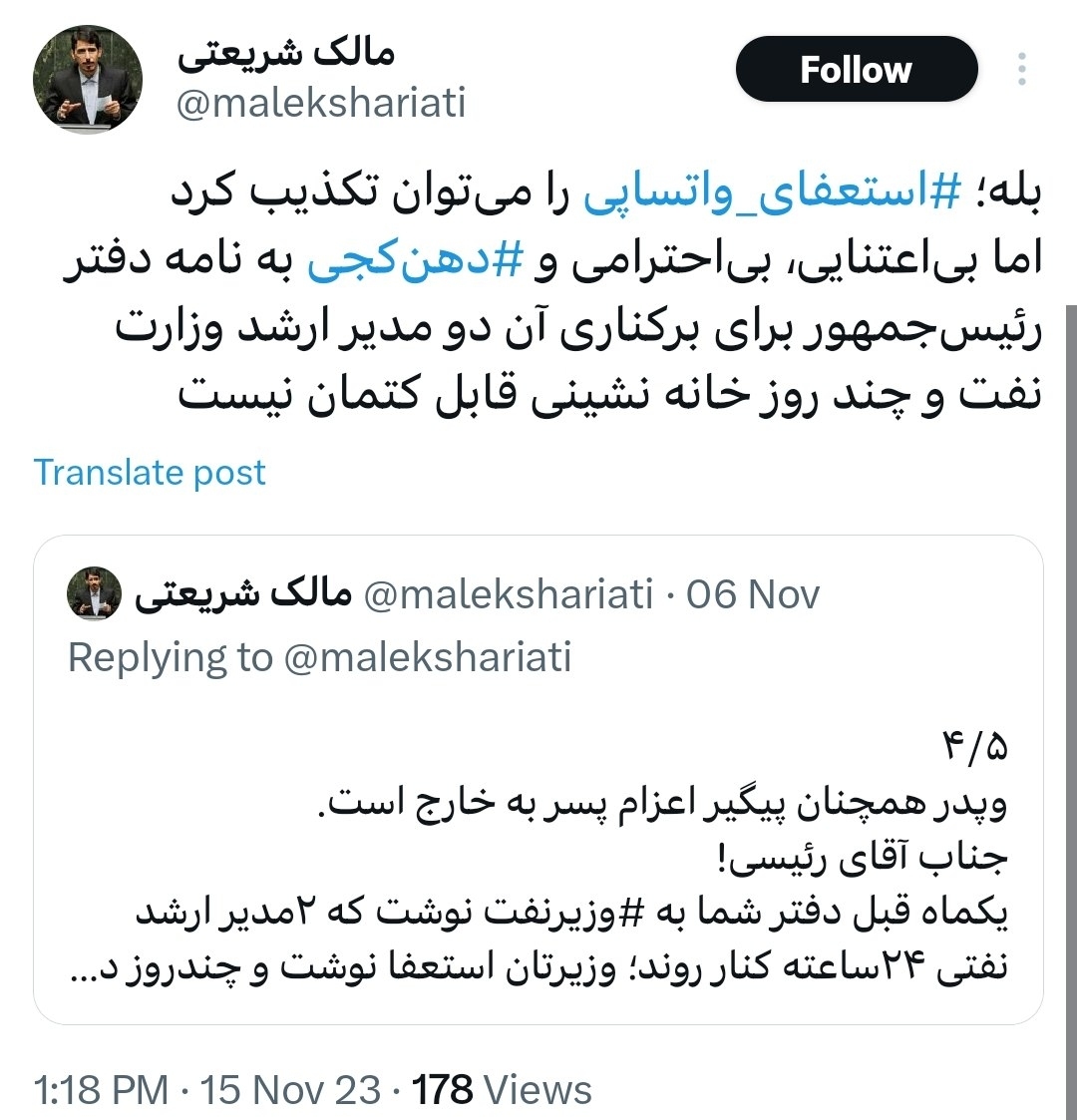مالک شریعتی نماینده ای که نخستین بار از استعفای اوجی وزیر نفت خبر داده بود، جزئیات جدیدی را افشا کرد.