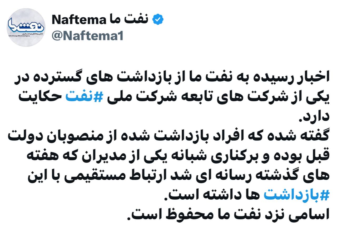 خبر تکمیلی / نفت ما در شبکه ایکس نوشت: