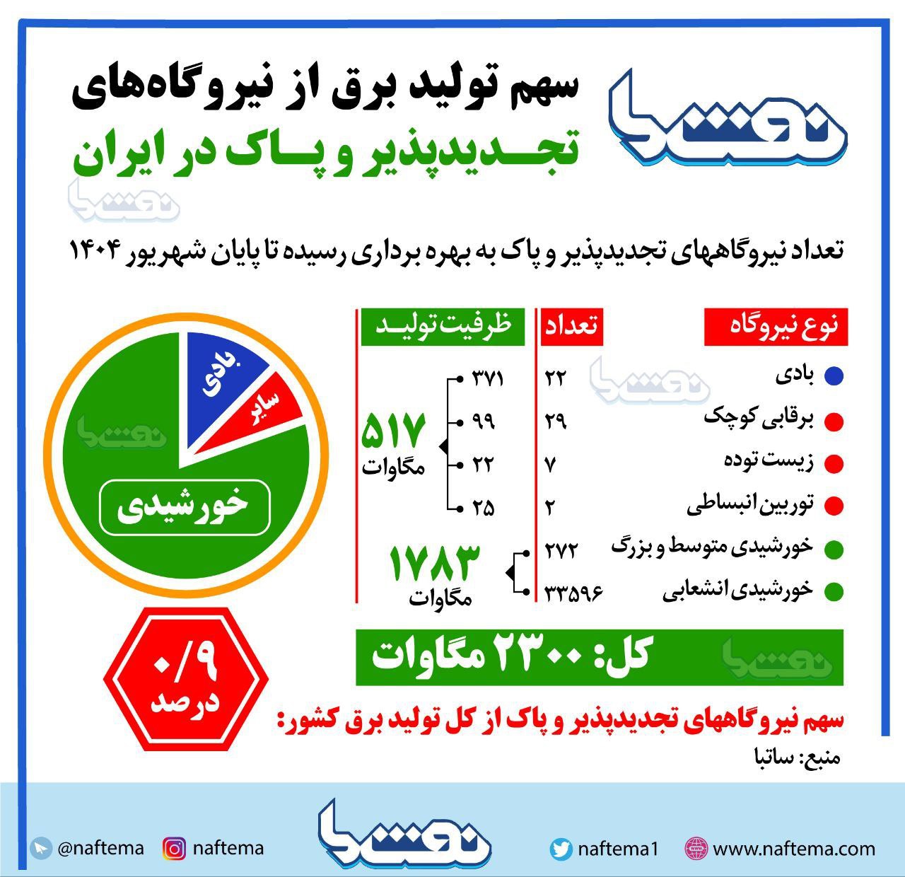 نفت ما، جزییات کاملی از سهم انواع نیروگاه های تجدیدپذیر از تولید برق کشور را میبینید.