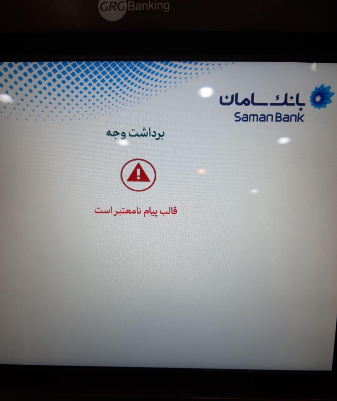 دقیقا مقابل دستگاه خودپرداز متوجه شدم که بانک سامان بسیار هوشمند عمل می کند چون من و متصدی بانک هرچه تلاش کردیم با پیام" قالب پیام نا معتبر است" رو به رو شدیم !این در حالی بود که متصدی بانک که اتفاقا فردی خوش رو بود با روی گشاده گفت در سیستم کارت هیچ مشکلی وجود ندارد، اما امکان خرید و یا برداشت وجه آن نیز امکان پذیر نیست!
