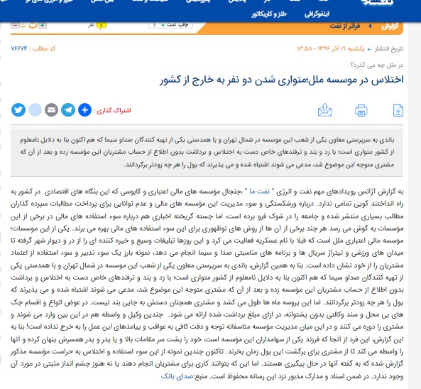 انتشار گزارش اختصاصی «نفت ما» درباره تخلفات مالی در مؤسسه مالی اعتباری ملل در ۱۹ آذر ۱۳۹۶، با عنوان